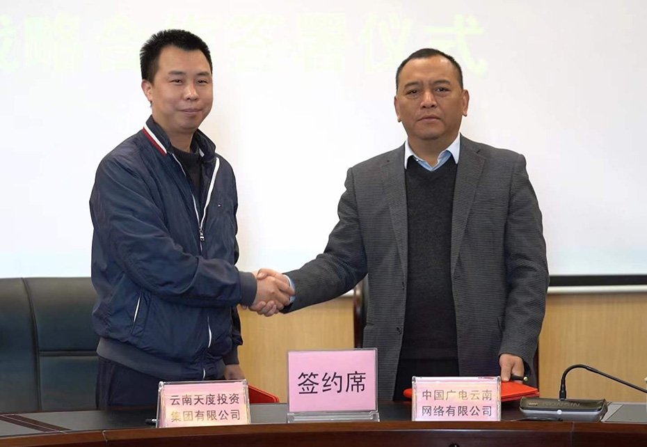 2月17日上午,中國廣電云南網絡有限公司與云南天度投資集團有限公司《戰略合作協議》簽署儀式在中國廣電云南網絡有限公司總部A座19樓舉行,雙方將在“文化固邊、電商興邊”、數字化服務及直播電商等新業態、新領域展開全面深入合作。中國廣電云南網絡有限公司總經理趙聯濤,云南天度投資集團有限公司董事長鄭桂文分別代表雙方簽署協議。