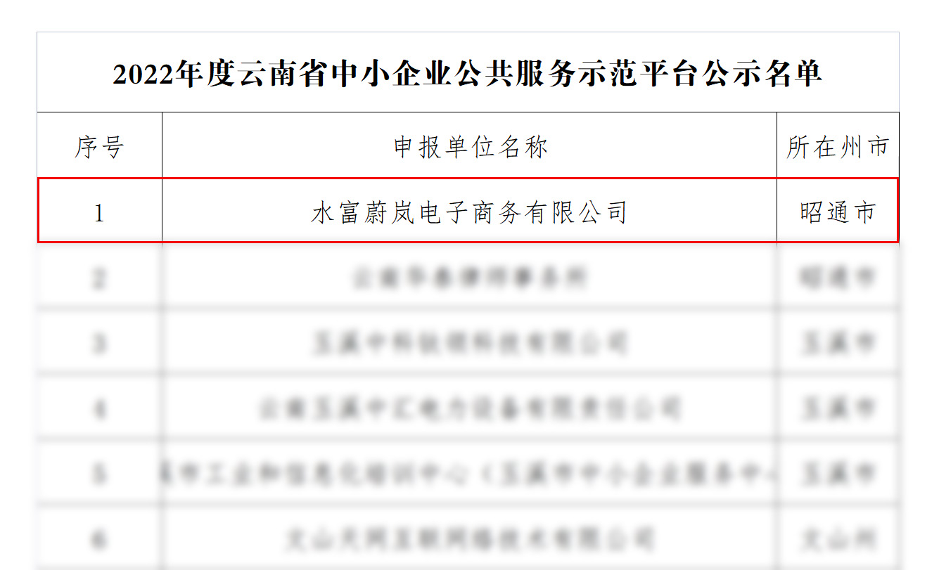 水富蔚嵐電子商務有限公司獲“省級中小企業公共服務示范平臺”認定